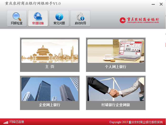 爲瞭(le)保證正常使用網上銀行,我們推薦您windows XP、IE6.0以上版本的操作系統及浏覽器,並(bìng)強烈建議您安裝網銀助手幫您一鍵安裝所需的驅動、控件等。